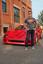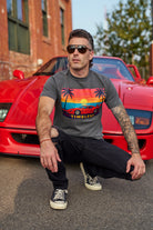 A super retro throwback tee TIMELESS represents the iconic Ferrari F40. This one is super 90s with its vibrant colors and sunset background. The Ferrari F40 is arguable the most iconic sportscar ever created. 2.9L twin-turbocharged V8 engine producing 478 hp and 426 lb-ft of torque, a 5-speed manual transmission, and a top speed of over 200 mph.