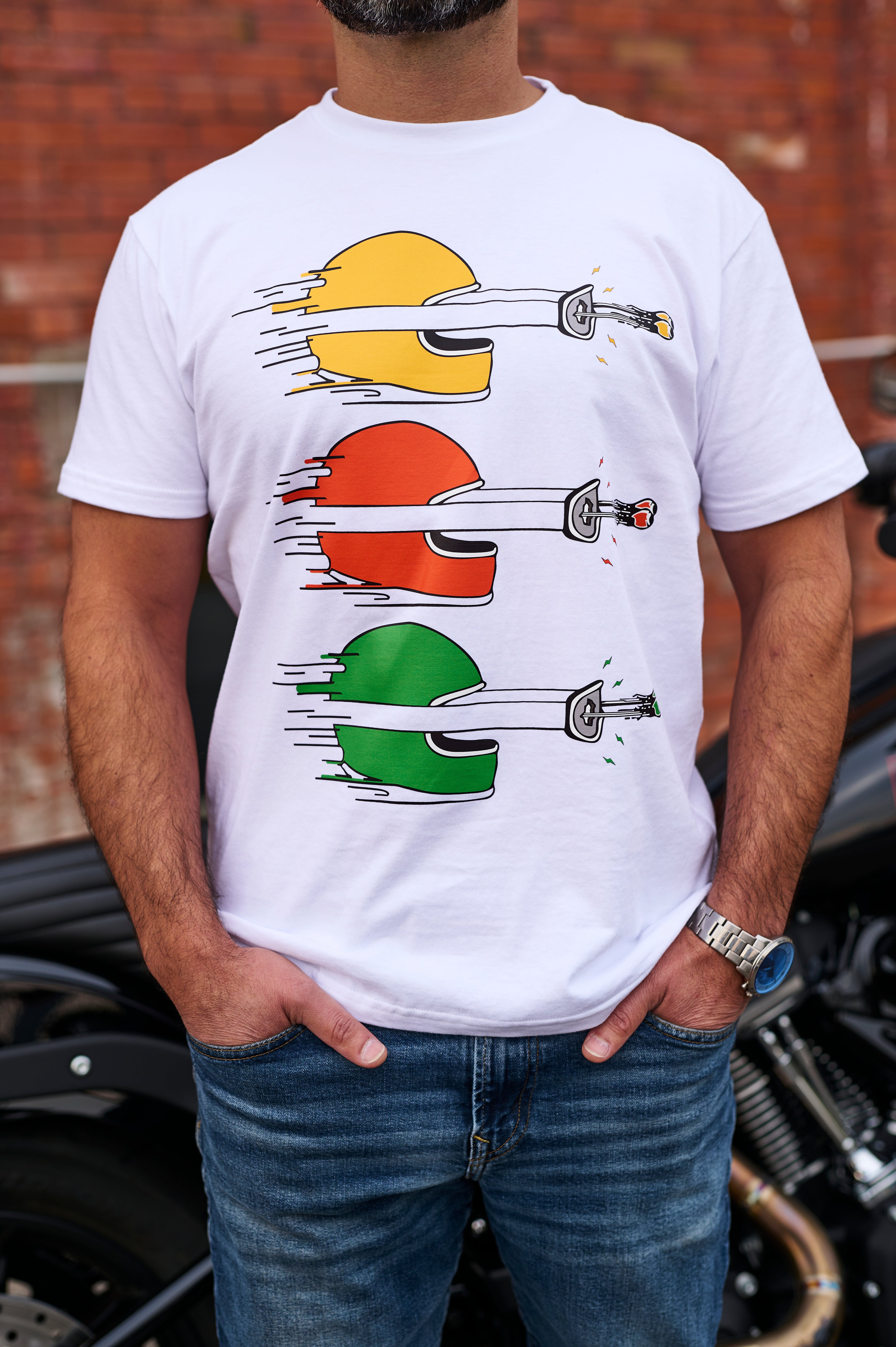A super retro motorbike tee SPEEDFREAK BULGING EYEBALLS represents the eye popping thrill of hauling A$$ through open roads. This one is super retro with its vibrant colors and striking design. Its never to late to get your motorbike license and hit the open roads full throttle!