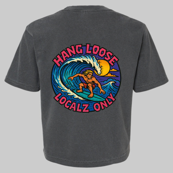 A super retro throwback tee HANG LOOSE LOCALZ ONLY represents the 70s/80s surf and skate scene when being a rebel meant everything to the youth of an iconic era. Inspired by the original Venice Beach pier local surfers and the Dogtown Z-boys skaters.