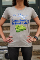 A super retro throwback tee LAMBOS 'N PRIVATE JETS represents and era of status and luxury with 80's supercars, penthouses and private jets. Do you still have the Lambo Countach poster that was up on your wall growing up?