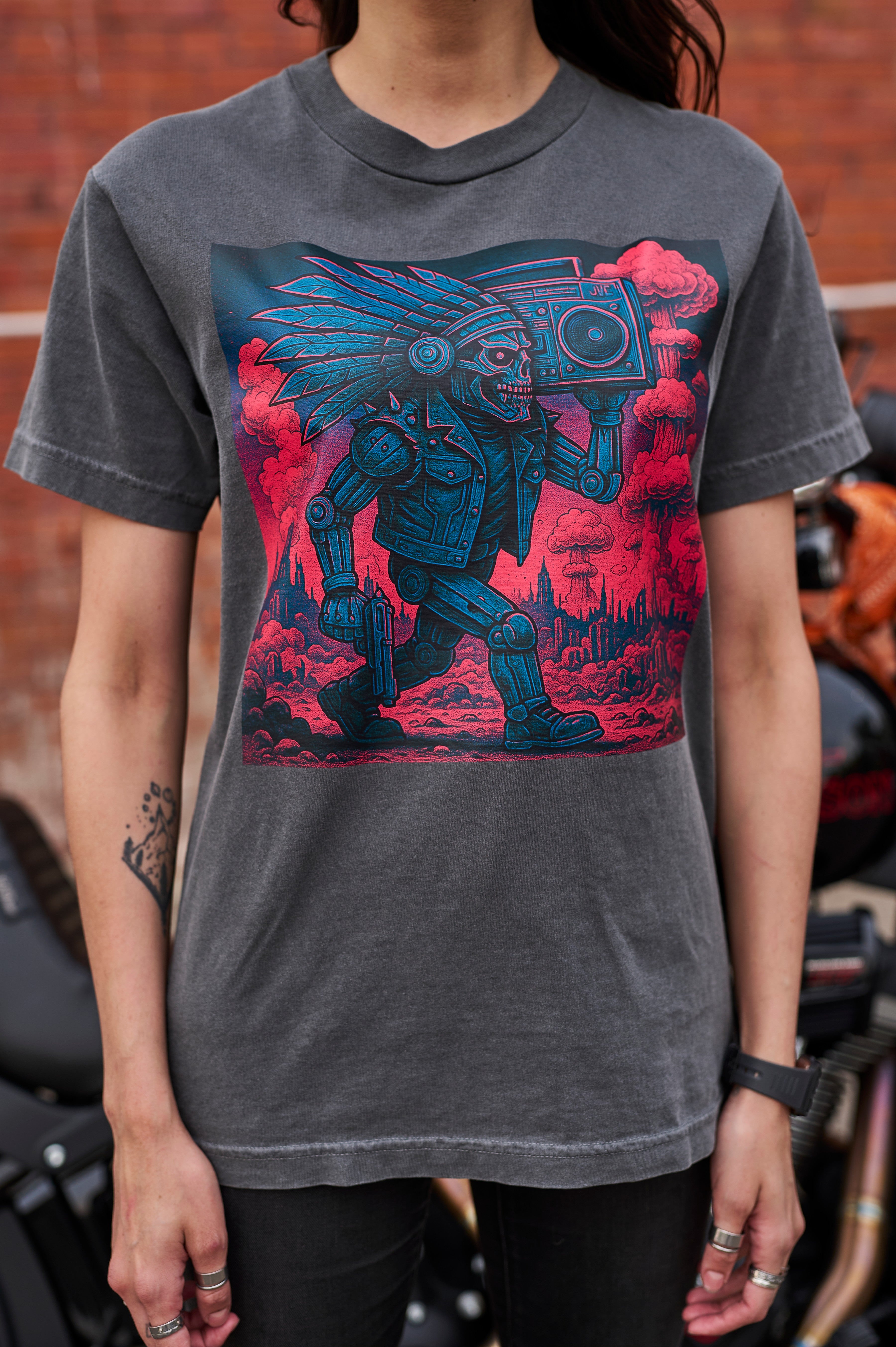 A super retro throwback tee represents the 80s when GIANT boomboxes were carried on the shoulders of the urban youth roaming the streets. If there was a breakdance competition busting out you can guarantee there was a HUGE ghettoblaster blaring music.