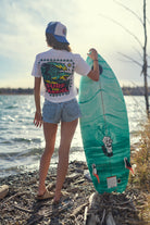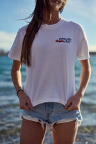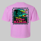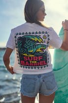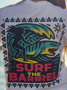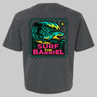 A super retro throwback tee SURF THE BARRREL represents the gnarliest of the BIG wave surfer scene! Inspired by Peʻahi, more commonly known as Jaws, the world-famous big wave surf break on the north shore of Maui Hawaii. By the late 1990s and early 2000s, Jaws had become the center of the big wave surfing world with only the top elite having conquered and survived!