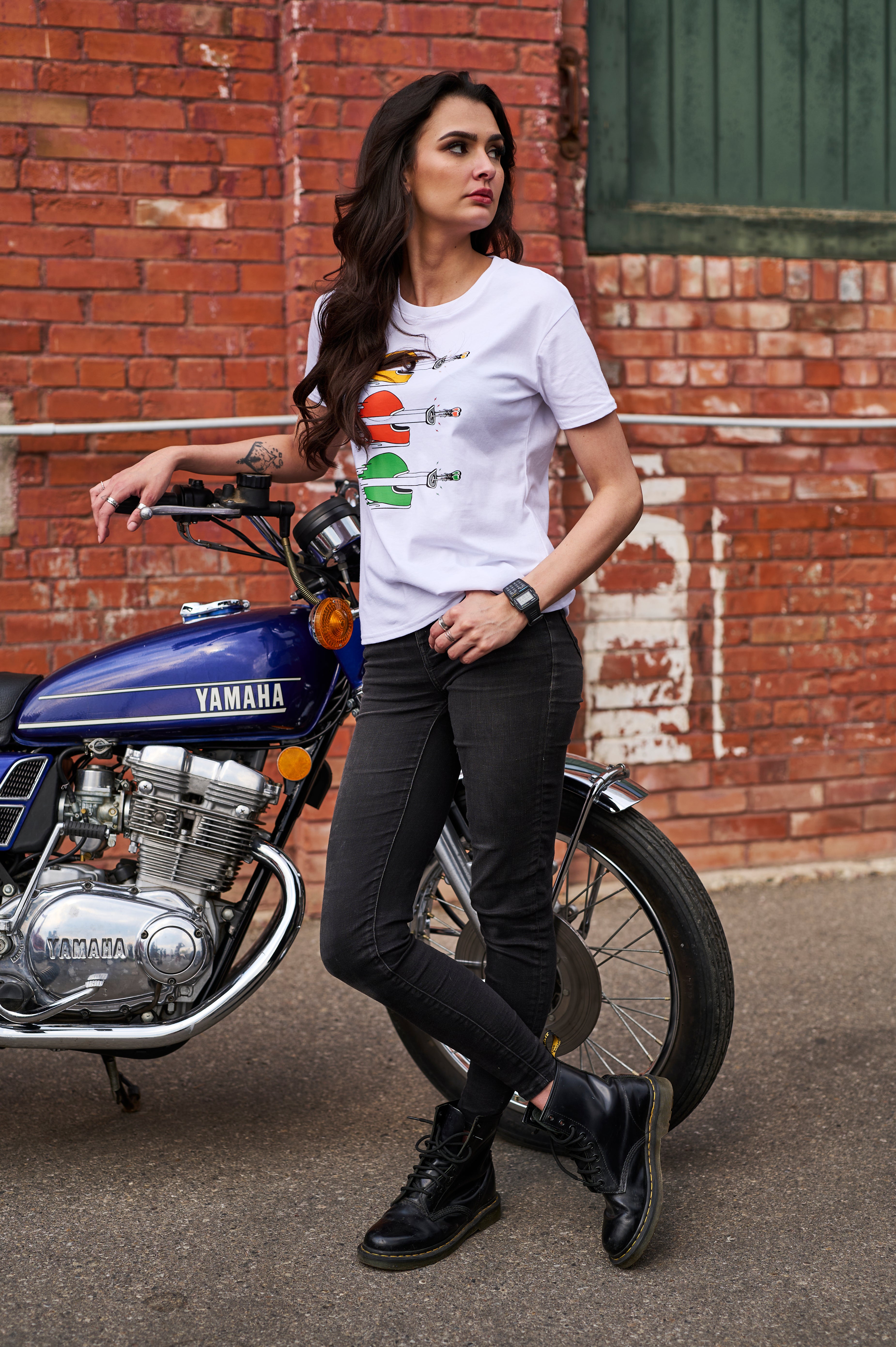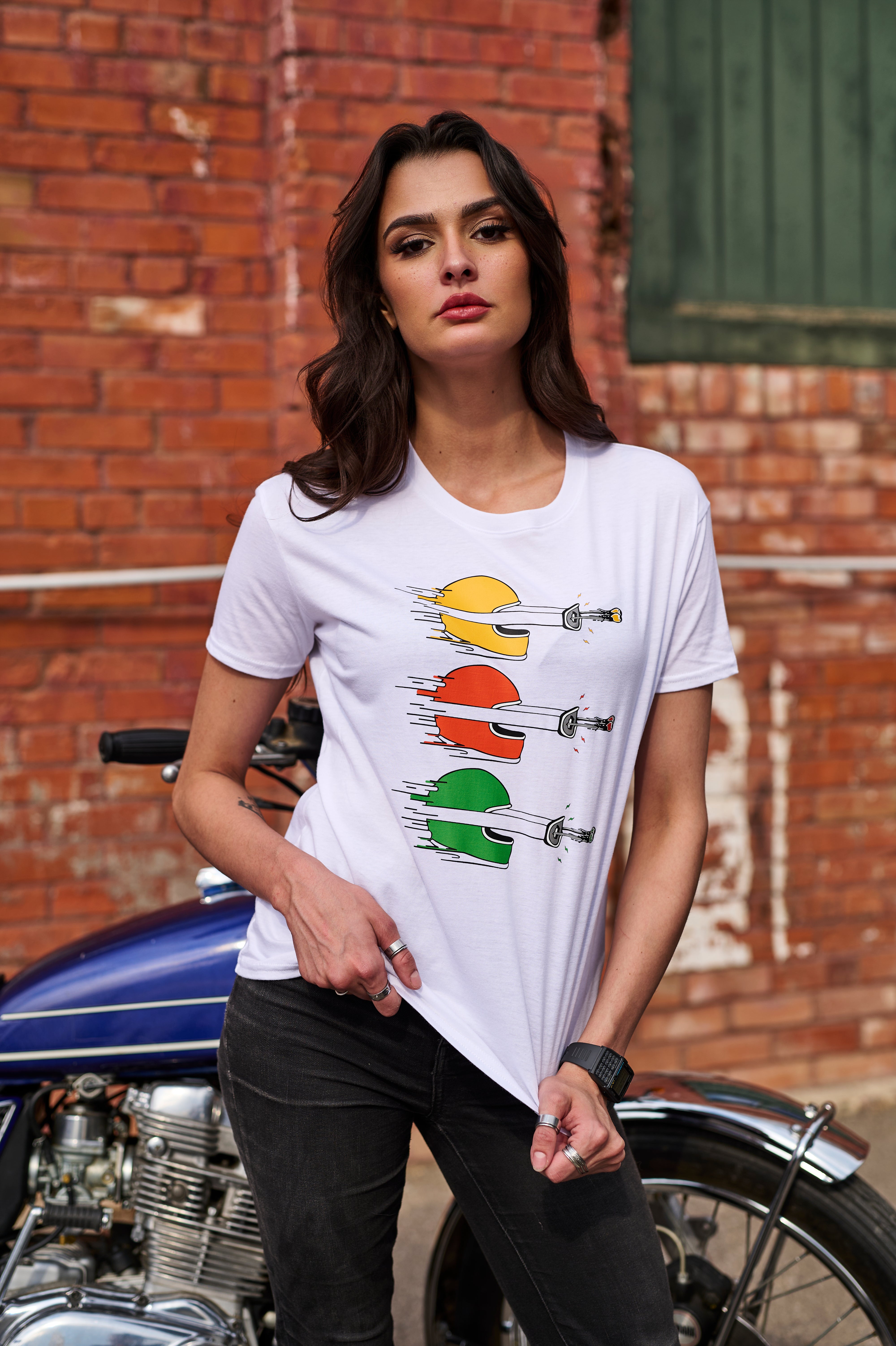 A super retro motorbike tee SPEEDFREAK BULGING EYEBALLS represents the eye popping thrill of hauling A$$ through open roads. This one is super retro with its vibrant colors and striking design. Its never to late to get your motorbike license and hit the open roads full throttle!