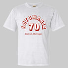 A super retro throwback tee AUTOMANIA '70 representing the era of the 60s and 70s where muscle cars ruled the streets one 1/4 mile at a time. This one is super 70s with its bold lettering and muscle car vibes.